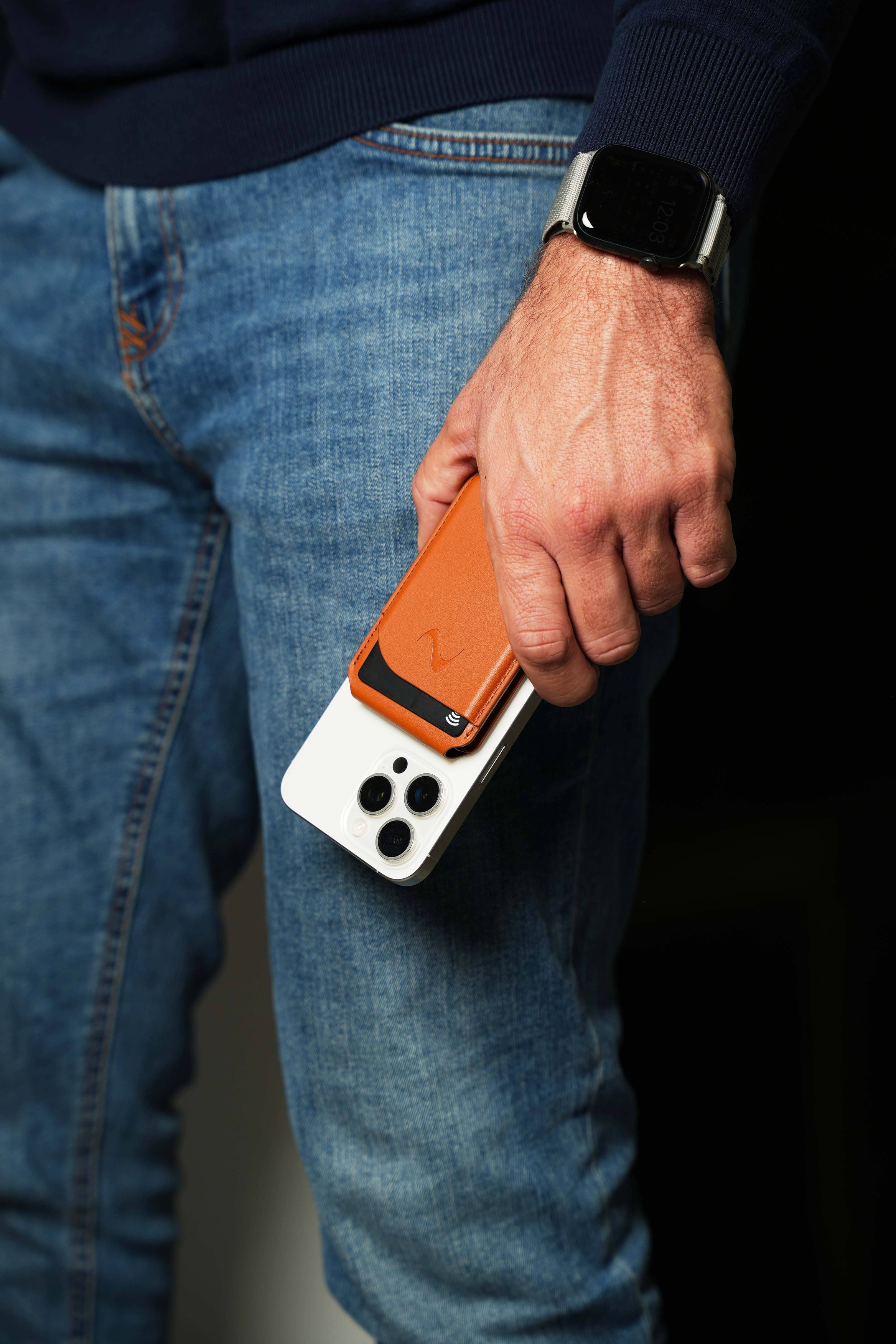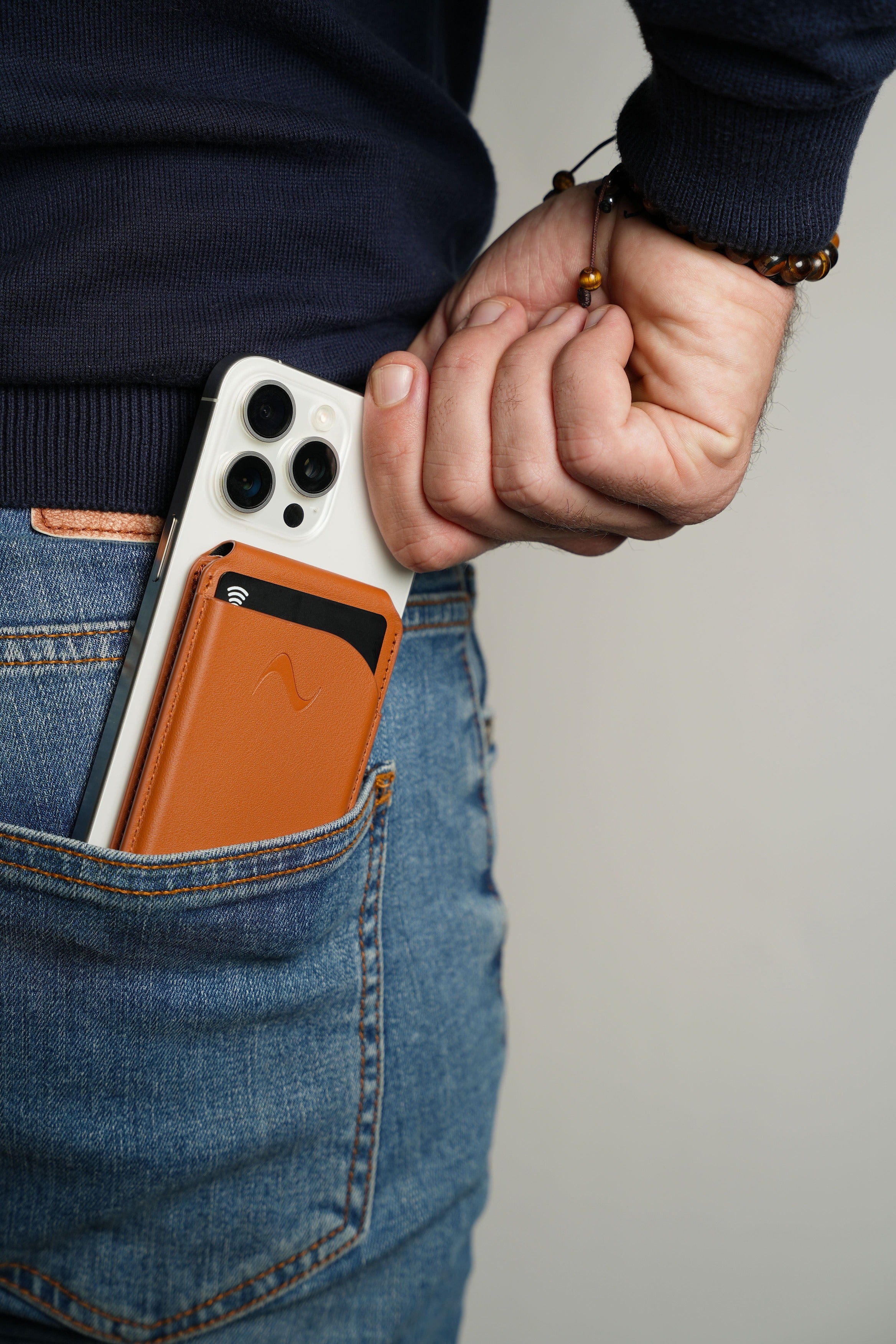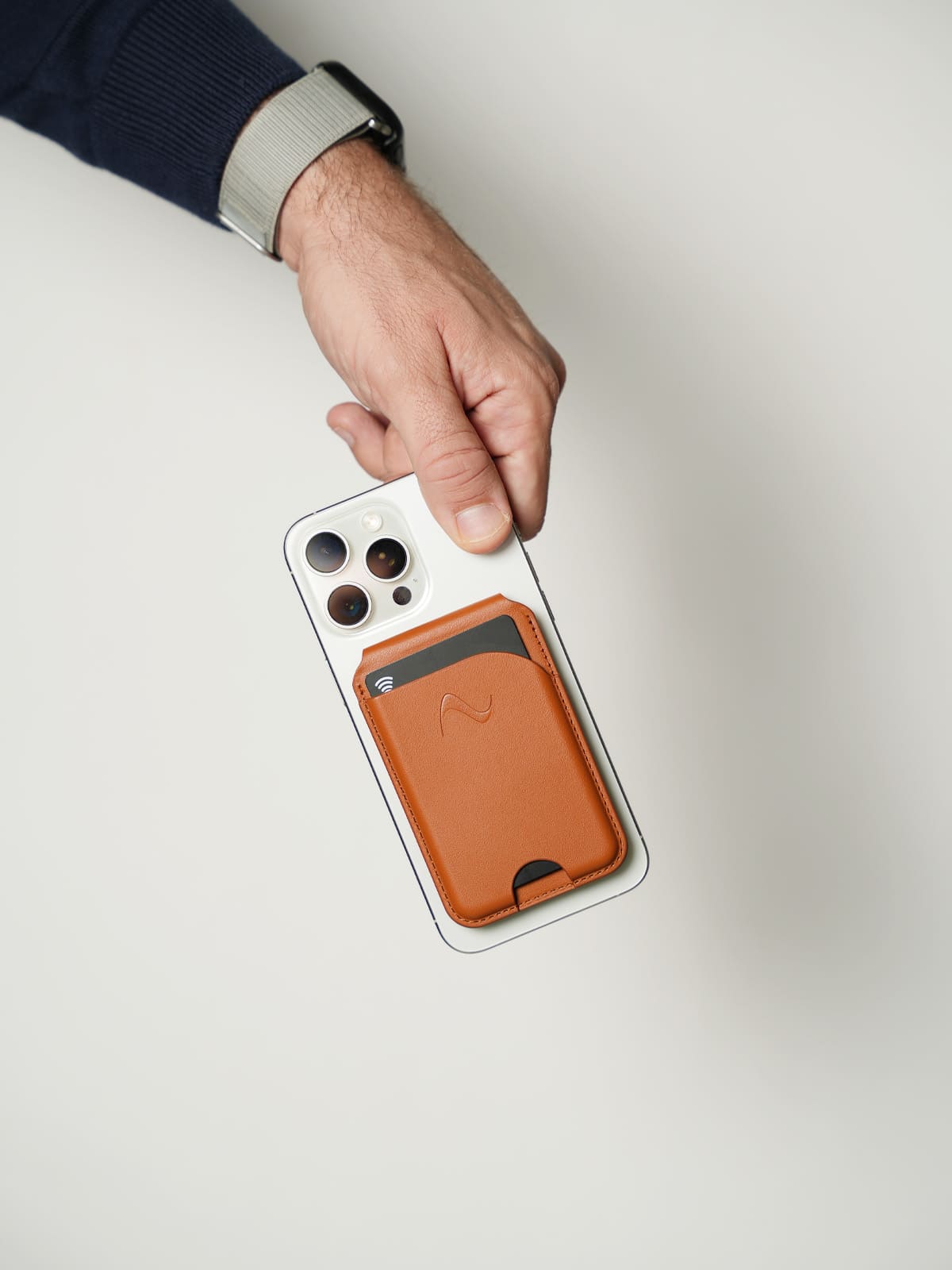 The MagSafe wallet is designed to work seamlessly with iPhones that have MagSafe compatibility. For Android phones, the wallet will work if you have a MagSafe-compatible accessory, such as a magnetic ring, attached to your device. It attaches securely and can also function as a stand, providing versatile support for your phone in both portrait and landscape modes.
