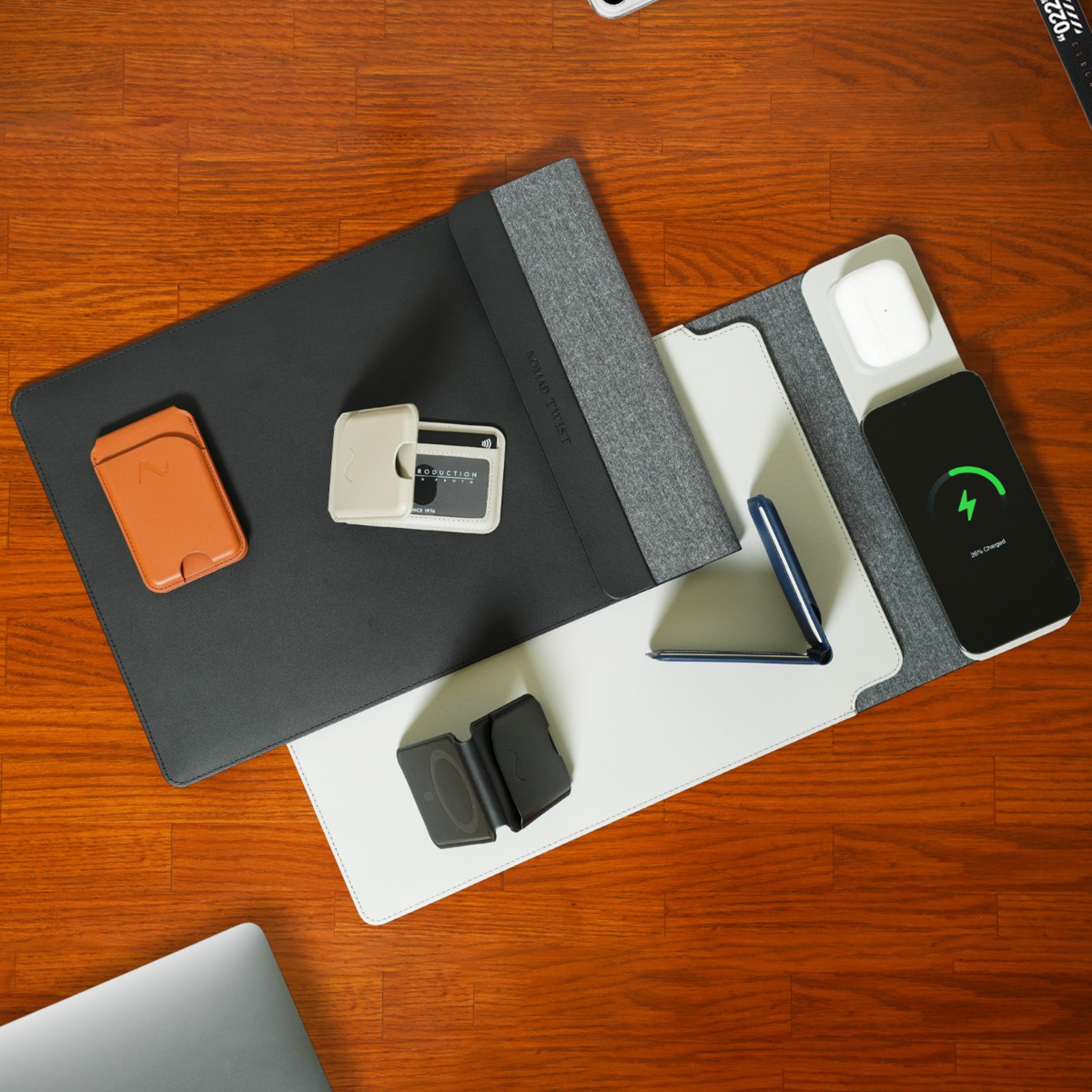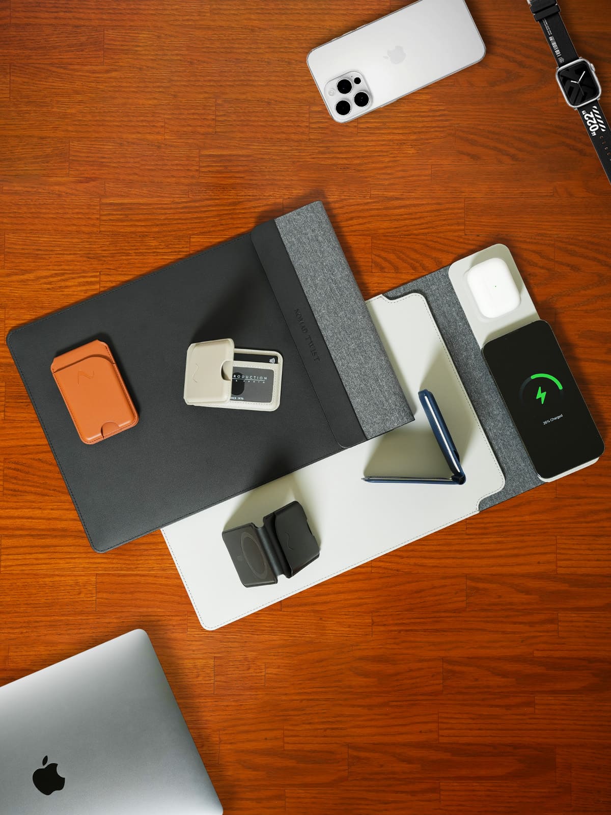 Nomad Twist products combine cutting-edge functionality with elegant design. Our current offerings include a laptop sleeve with an integrated charging station for your phone and AirPods, and a MagSafe wallet that doubles as a phone stand. All future products will also embody the same smart and elegant approach, crafted to meet the needs of modern, mobile professionals.